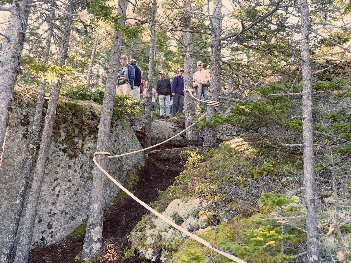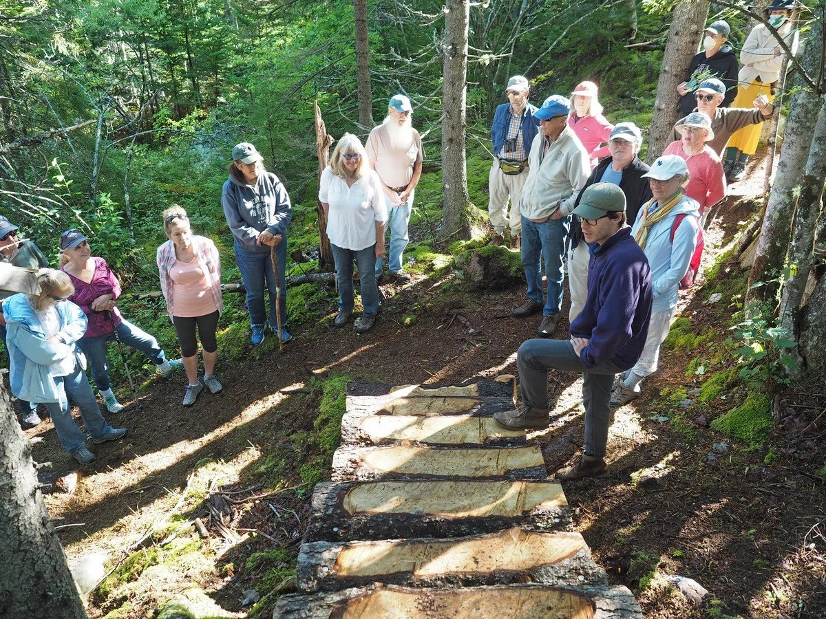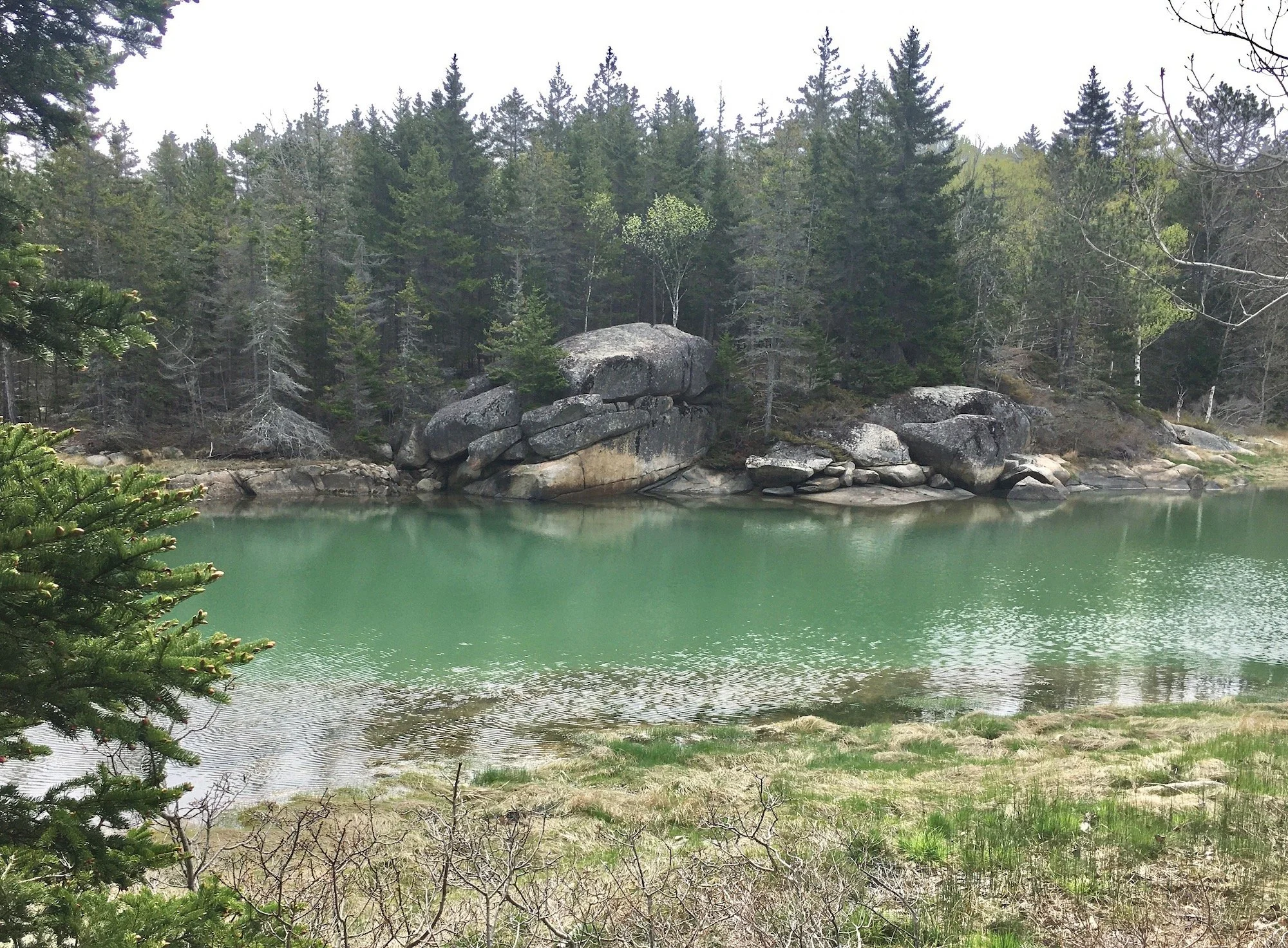 In 2013, VLT received a conservation easement on yet another nearby parcel of land, a 46-acre site just west of the Carrying Place Bridge, which allowed us to establish a hiking trail from Vinal Cove to Round Pond. This trail was completed in the summer of 2013, and visitors can enjoy more than a mile of hiking through mature spruce forests and over bare granite ledges.
